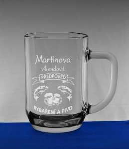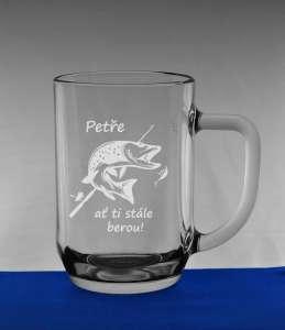 Rybářské půllitry s pískovaným motivem jsou originálním dárkem pro každého rybáře. Skleněný půllitr můžeme ozdobit motivem ryby, jménem, datem nebo osobním věnováním podle přání zákazníka.
